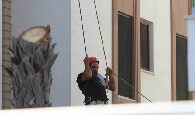 Olay, 14.30 sıralarında Muratpaşa ilçesi Çağlayan Mahallesi 2000 Sokak'ta bulunan bir sitede meydana geldi. Edinilen bilgiye göre, sitede bulunan palmiye ağaçlarının budanması için site yönetimi bir vinç kiraladı. Kiralanan 07 BBH 270 plakalı vinç, sitede gerekli önlemleri aldıktan sonra görevliyi sepete alarak çalışmaya başladı. Ali A. isimli site görevlisi motorlu testereyle palmiyeleri budadığı sırada vincin ayaklarından birisinin hidroliği boşalarak yan yattı. Vincin devrilmesini site duvarı engellerken, sepet ise palmiye ağacına takılı kaldı.