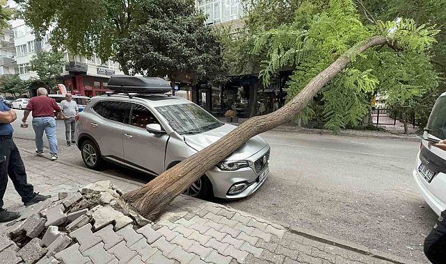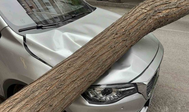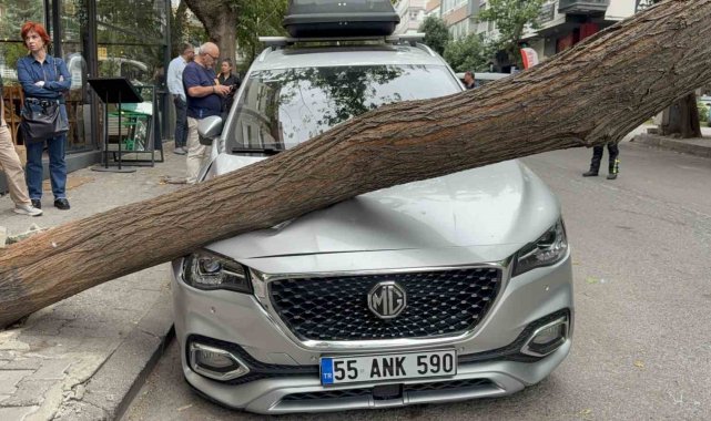 Samsun'da kaldırımda bulunan akasya ağacı park halindeki otomobilin üzerine devrilerek maddi hasara yol açtı.