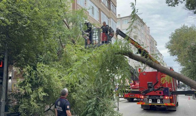 Cadde araç trafiğine kapandı. Samsun Büyükşehir Belediyesi İtfaiye Dairesi Başkanlığı ekipleri ağacı budayıp gövdesini keserek yolu yeniden trafiğe açtı.