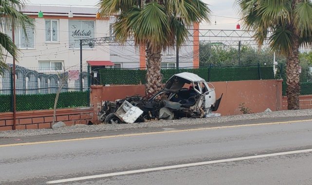 Hatay'ın Erzin ilçesinde ağaca çarparak ikiye bölünen Tofaş otombilin sürücüsü yaralandı. O anlar anbean güvenlik kamerasına yansıdı.