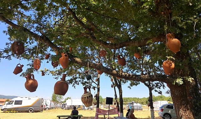 Bilecik'in Pazaryeri ilçesine bağlı Kınık Köyü, hem doğasıyla hem de kültürel zenginliğiyle dikkat çekmeye devam ediyor. Köyde yeni açılan Kınık Kamp ve Karavan Alanı'nda, çömlek ustalarının elinden çıkan ve çeşitli nedenlerle deforme olmuş çömlek eşyalar, çöpe atılmak yerine doğayla bütünleştirildi. Ağaç dallarına özenle asılan çömlekler, kamp alanına hem otantik bir hava kattı hem de gelen misafirler için eşsiz bir görsel şölen oluşturdu.