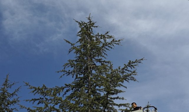 Kayseri'de tırmandığı ağaçtan inemeyerek mahsur kalan kediyi itfaiye ekipleri indirdi.