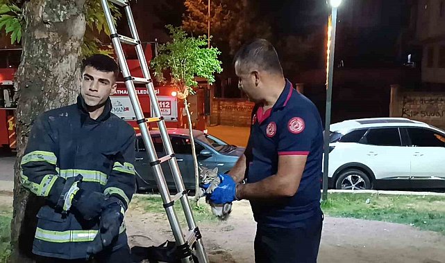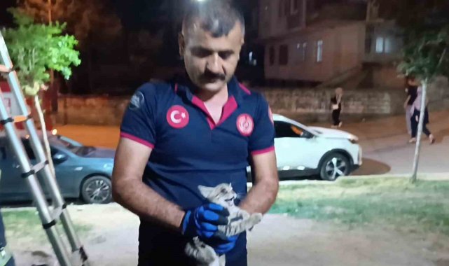 Batman'da ağaçta mahsur kalan yavru kedi, itfaiye ekipleri tarafından kurtarıldı.