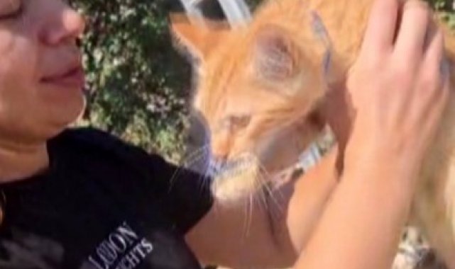 Kurtarılan kedi, vatandaşlara teslim edildi.