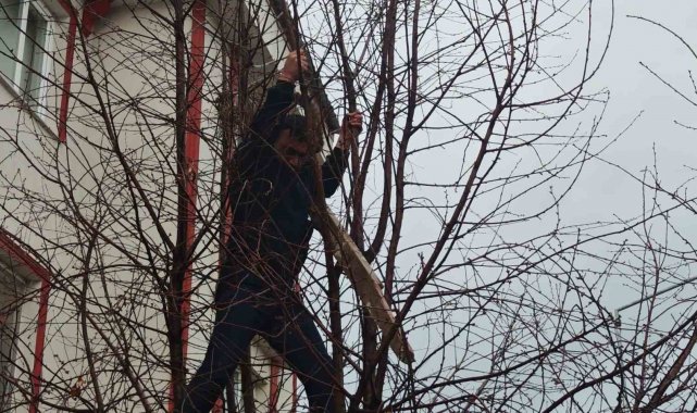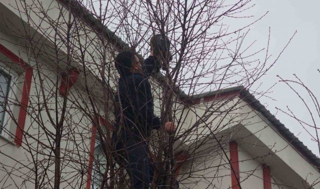 Ağaçta mahsur kalan kediye zabıtadan kurtarma operasyonu