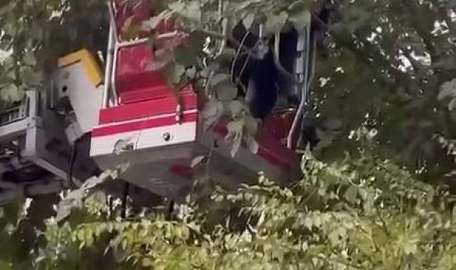 Ağaçta mahsur kalan kediyi kurtarmak için seferber oldular