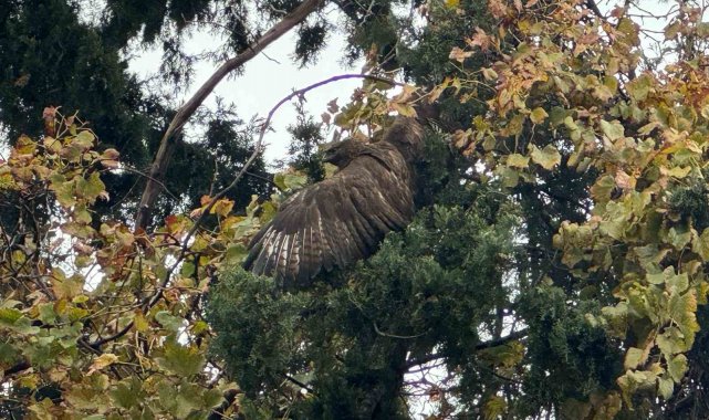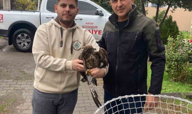 Hatay'da ağacın dallarına takılarak mahsur kalan şahin, itfaiye ekipleri tarafından kurtarılarak DKMP ekiplerine teslim edildi.