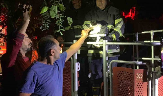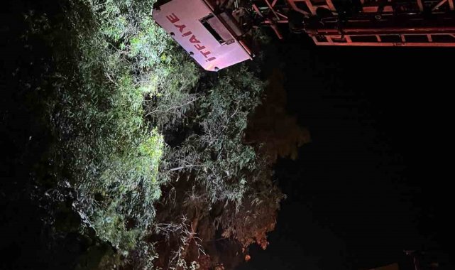Ağaçta sıkışan kediyi itfaiye kurtardı