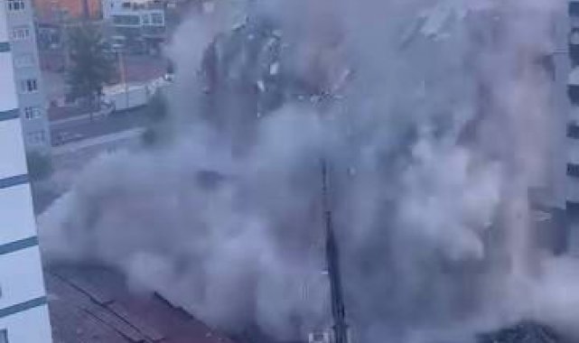 Ağır hasarlı 8 katlı bina tek dokunuşta yerle bir oldu