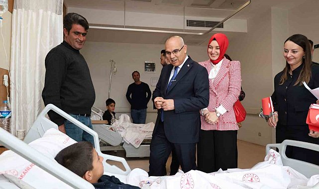 Ağrı Valisi Mustafa Koç ve eşi Neslihan Gül Koç, 23 Nisan Nisan Ulusal Egemenlik ve Çocuk Bayramı dolayısıyla hastanede tedavi gören çocukları ziyaret ederek bayram sevincine ortak oldu.