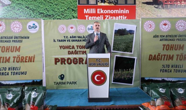 Ağrı Valisi Önder Bozkurt, DAP Bölge Kalkınma İdaresi Başkanı Halil İbrahim Güray, il protokolü ve çiftçilerin katılımıyla gerçekleştirilen törende, 440 çiftçiye yüzde 70 hibe desteğiyle toplam 44 ton sertifikalı yonca tohumu verildi. Dağıtılan tohumlarla 8 bin 800 dekar tarım arazisinin ekilmesi hedefleniyor.