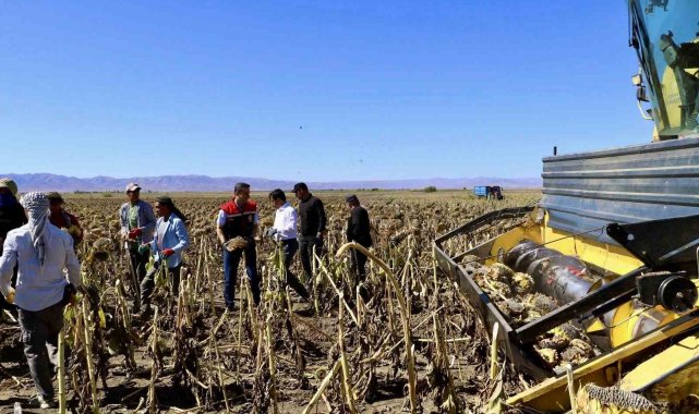 Merkeze bağlı Tezeren köyünde yapılan ayçiçeği hasadına katılan İl Tarım ve Orman Müdürü Mehmet Hüseyinoğlu, hem kalite hem de miktar açısından üreticilerin memnun olduğunu belirterek, "Ağrı'nın Tezeren köyünde Mirza Tanrıverdi isimli vatandaşımızın 9 bin dekar alanda yaptığı ayçiçeği hasadındayız. Buradaki ürün çerezlik ayçiçeği. İlimizde 2024 yılında toplam 34 bin 500 dekar alanda ayçiçeği üretimi yapılmıştı. Bunun 500 dekarı yağlık, 34 bin dekarı ise çerezlik ayçiçeğiydi. 2025 yılında ise toplam 50 bin 500 dekar alanda ekim gerçekleştirildi. Bunun 15 bin dekarı yağlık, 37 bin dekarı ise çerezlik ayçiçeği oldu. Geçtiğimiz yıl ayçiçeği üretiminden ilimize 315 milyon TL katkı sağlandı. Bu yıl ise 750 milyon TL'ye yakın bir girdi elde edilmesini bekliyoruz. Çerezlik ayçiçeğinin daha çok tercih edilmesinin sebebi, piyasa şartlarında üreticiye daha yüksek gelir sağlamasıdır. Ayrıca genellikle sözleşmeli üretim yapıldığı için pazar sorunu yaşanmıyor. Üretici ürünü daha ekmeden hangi firmaya satacağını biliyor" dedi.