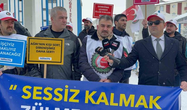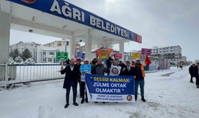 Ağrı Belediyesi önünde toplanan işçiler, ellerinde "Hani nerede verdiğin sözler Hazal abla", "Ağrı'nın kışı sert, direnişimiz daha sert", "Ekmeğime uzanan eller kırılsın", "İşçi-sendika omuz omuza" ve "Ağrı'da kar erir, zulüm de eriyecek" yazılı pankartlar taşıdı. Hizmet-İş Sendikası Ağrı Şube Başkanı Emrah Aslan, burada yaptığı basın açıklamasında, mahkeme kararıyla işe dönüş hakkı kazanan işçilerin hukuksuz bir şekilde işlerine geri alınmadığını belirtti.