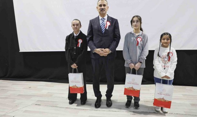 Ağrı Valiliği himayelerinde İl Milli Eğitim Müdürlüğünce düzenlenen "12 Mart İstiklal Marşı'nın Kabulü ve Mehmet Akif Ersoy'u Anma Günü" temalı resim, kompozisyon ve şiir yarışmalarında dereceye giren öğrencilere ödülleri verildi.
