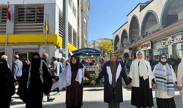 Cumhuriyet Caddesi'nde bir araya gelen kadınlar, ellerinde Filistin ve Türk bayrakları taşıyarak, boyunlarına kefiye bağladı. Kadınlar, el ele tutuşarak "Gazze İçin Sessiz Çığlık" zinciri oluşturdu. Etkinlikte konuşan AK Parti Ağrı Kadın Kolları Başkanı Zeynep Eldem, Gazze'de yaşanan zulme karşı sessiz kalmadıklarını belirtti.