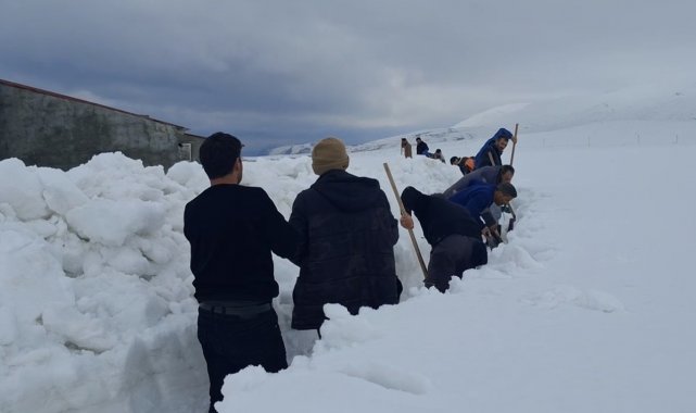 Köy sakinleri bir araya gelerek küreklerle kar tabakasını yarıp suyun kontrollü şekilde akabileceği kanallar açtı.