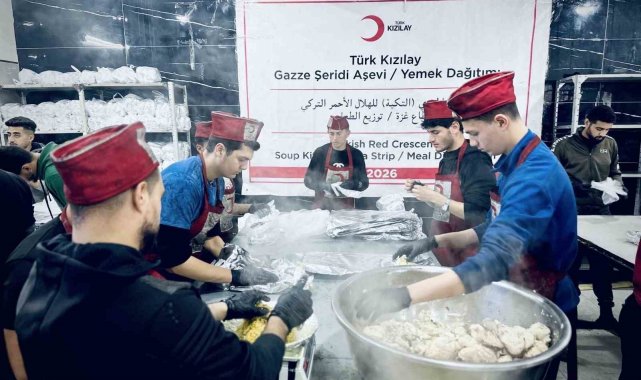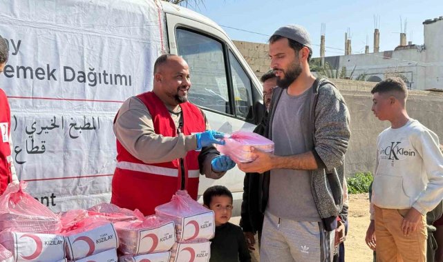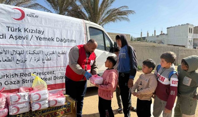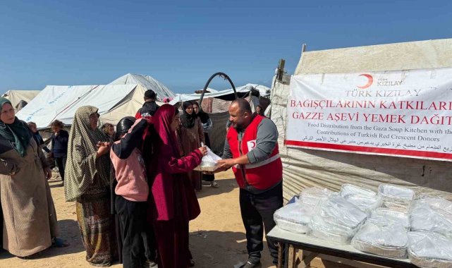Türk Kızılay tarafından Gazze'de hizmet veren ve her gün yaklaşık 60 bin kişiye sıcak yemek ulaştıran aşevinde, Ağrı'daki öğrencilerin destekleriyle iftar sofraları kuruldu.
