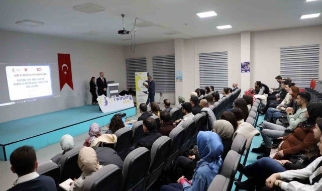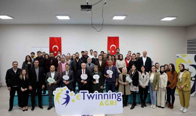Mahallî hizmet içi eğitim faaliyetleri kapsamında Ağrı Araştırma Geliştirme Merkezi salonunda gerçekleştirilen eğitime, İl Milli Eğitim Müdürü Hasan Kökrek, Şube Müdürü Selahattin Bilgiç, eTwinning Türkiye içerik geliştirme ekibi üyeleri Bircan Keleş ve Kenan Çete ile farklı okullardan 60 öğretmen katıldı.