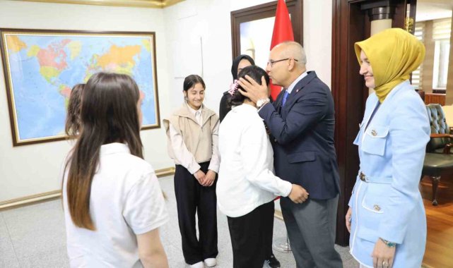 Projeyle eğitime kazandırılan öğrencilerden 5'i, Ağrı Valisi Mustafa Koç'un makamında temsili olarak ağırlandı. Öğrencilere karnelerini ve çeşitli hediyelerini takdim eden Vali Koç, yaptığı açıklamada,"Eğitim, bir toplumun geleceğini inşa eden en temel yapı taşlarından biridir. Bu bilinçle, ilimizde eğitimde fırsat eşitliğini sağlamak, çeşitli nedenlerle örgün eğitimin dışında kalan evlatlarımızı yeniden eğitim ortamına kazandırmak amacıyla 'Okulum Beni Bekler' projesini başlattık. Bugün itibarıyla 2 bin 129 öğrencimizi yeniden eğitim sistemine dahil etmenin gururunu yaşıyoruz" dedi.