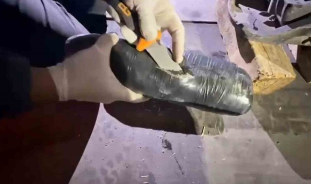 Ekiplerce takibe alınan çekici ve dorsesinde yapılan aramada, 2 paket halinde toplam 1 kilo 220 gram skunk maddesi bulundu.
