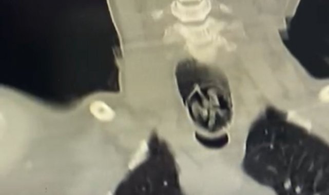 Yapılan muayene ve tomografi incelemesinde cevizin yemek borusuna takıldığı tespit edildi. Hastanın solunum yollarının tamamen tıkanmaması için zamanla yarışan sağlık ekibi, endoskopi yöntemiyle cevizi başarılı şekilde çıkardı.