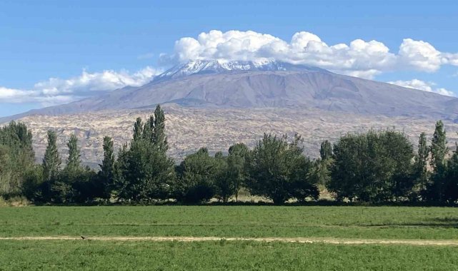 Ağrı Dağı'na yağan kar, ovanın yeşili ile birleşerek kartpostallık görüntüler oluşturdu.