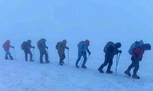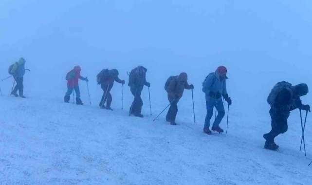 Ağrı Dağı'nda etkili olan kar yağışı ve fırtına, zirve tırmanışı yapan dağcılara zorlu anlar yaşattı.