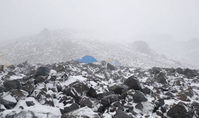 Ağrı'nın Doğubayazıt ilçesinde bulunan 5 bin 137 rakımlı Ağrı Dağı'nın yüksek kesimlerinde ve zirvesinde eylül ayına rağmen kar yağışı, fırtına ve yoğun sis etkisini sürdürüyor. Birçok dinde kutsal kabul edilen, terörden arındırıldıktan sonra yeniden tırmanışa açılan ve yılın her döneminde dağcı gruplarını ağırlayan Ağrı Dağı'na zirve tırmanışı gerçekleştirmek isteyen bir grup dağcı, 4 bin 200'de etkili olan kar ve tipinin ardından tırmanışa ara verdi.