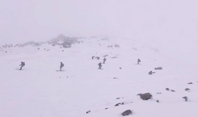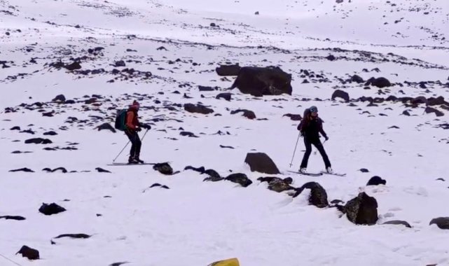 Yerel rehber Resul Civaş eşliğinde gerçekleşen tırmanış, sabahın erken saatlerinde başladı. Havanın zaman zaman bozmasına rağmen dağcılar, 3 bin 500 metrede kısa bir mola vererek kayak yapmanın keyfini yaşadı. Tipi ve fırtınaya rağmen karla kaplı yamaçlarda kaymaktan vazgeçmeyen grup, adrenalin dolu anlar yaşadıktan sonra zirveye doğru yürüyüşünü sürdürdü.
