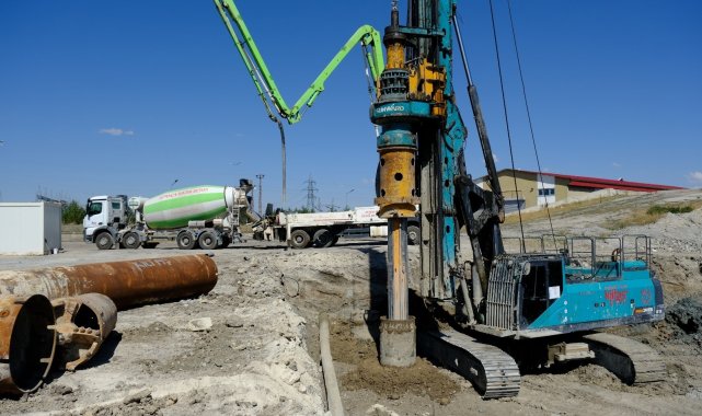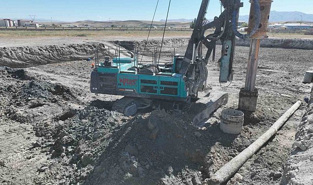 Ağrı İl Özel İdaresi tarafından yapımına başlanan yeni hizmet binasında temel kazısı tamamlanırken, zemin iyileştirme çalışmaları fore kazık uygulamasıyla sürüyor.