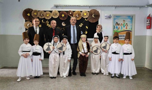 Geleneksel kıyafetler giyen öğrencilerin davul gösterisini izleyen Vali Bozkurt, semazen gösterisi ile ilahi dinletisini takip etti.