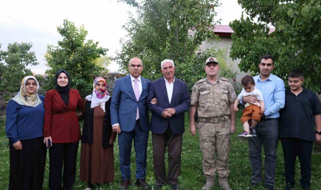 Vali Mustafa Koç, beraberinde Diyadin Kaymakamı Furkan Korkusuz ve İl Jandarma Komutanı Tuğgeneral Fatih Cemal Kiper ile birlikte, şehit Ali Özer'in Diyadin ilçesinde yaşayan oğlu Ümit Özer ve ailesini evlerinde ziyaret etti.