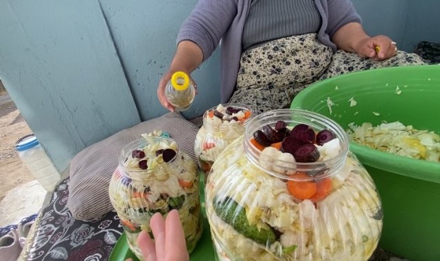 Ev hanımı Senem Yılkan, her yıl olduğu gibi bu yıl da kış mevsiminde tüketmek üzere turşu hazırladıklarını belirterek, "Kışın sofralarımızda doğal ürünler bulunsun diye lahanalarımızı getirip turşu kuruyoruz. İçine havuç, biber ve sirke ekliyoruz. Turşu hem lezzetli oluyor hem de bağışıklığı güçlendiriyor. Kış aylarında çorbanın, kuru fasulyenin yanına çok yakışıyor" dedi.