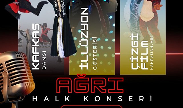 Ağrı Valiliği tarafından 21 Şubat'ta düzenlenecek "Ağrı Halk Konseri"ne halkın ilgisinin yoğun olması beklenirken, etkinlikte Kafkas dansı gösterileri sahnelecek. Çocukların severek izlediği çizgi film kahramanlarının gösterileriyle de minikler eğlenceli bir gün geçirecek.