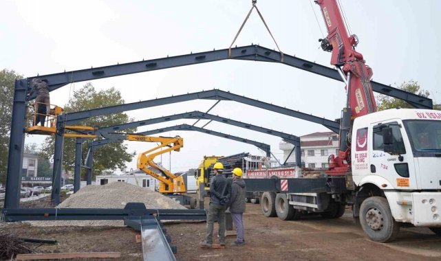 Ağustos'ta temeli atılan pazar ve fuar alanının inşaatı tamamlanıyor