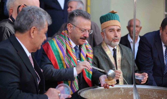 Eskişehir'de Bereket Duası ile başlayan Ahilik Haftası etkinlikleri çerçevesinde Vali Hüseyin Aksoy, katılımcılara irmik helvası ikram etti.