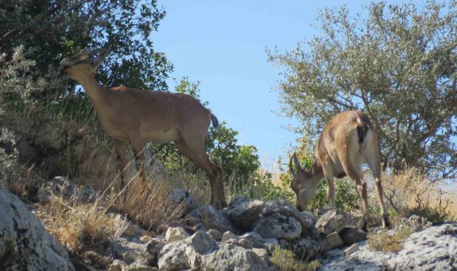 Kahramanmaraş'ta Ahır Dağı'nın yamaçlarında görüntülenen ala geyik sürüsü, hem doğaseverleri hem de bölge halkını heyecanlandırdı. Kent merkezine oldukça yakın bir konumda kaydedilen görüntülerde, geyik sürüleri dağ yamacında birlikte hareket ettiği görüldü.