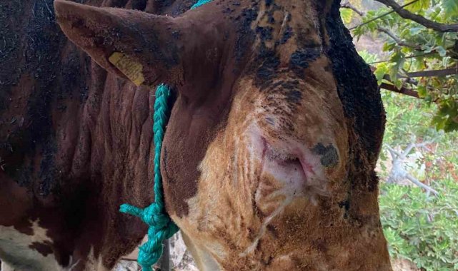 Antalya'nın Gazipaşa ilçesi Göçük Mahallesi Sümbüller mevkiinde Hayati Yaman'a ait ahırda çıkan yangında, yeni doğmuş bir buzağı telef olurken, doğum yapan inek ağır yaralandı.