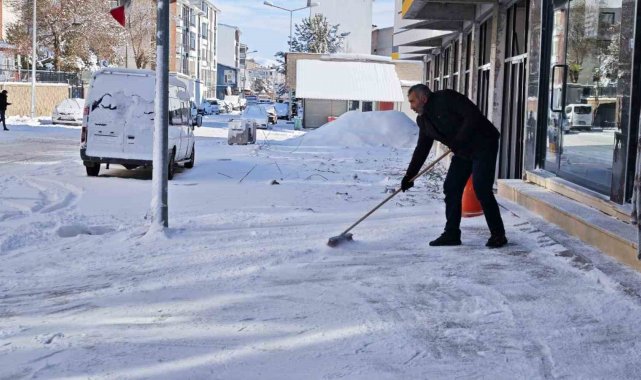 Esnaf Nihat Marangoz, sabah uyandıklarında beyaz örtüyle karşılaştıklarını söyledi. Marangoz, "Sabah uyandık kar yağmıştı. İş yerimizi açtık, önünü temizledik. Müşterilerimizi bekliyoruz" dedi.