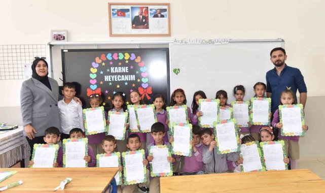 Ahlat'ta 2024-2025 eğitim öğretim yılının tamamlanması nedeniyle Şehit Eren Öztürk İlkokulu'nda karne töreni düzenlendi. Düzenlenen karne törenine Ahlat Kaymakamı Batuhan Bingöl, Ahlat Belediye Başkanı Yavuz Gülmez, İlçe Milli Eğitim Müdürü Rafet Akgün ve şube müdürleri katıldı. Kaymakam Bingöl ve beraberindekiler ziyaret ettikleri sınıfta, öğrencilere karne ve çeşitli hediyeler dağıttı. Öğrencilere iyi tatiller dileyen Kaymakam Bingöl ve beraberindekiler, toplu hatıra fotoğrafı çektirdi.
