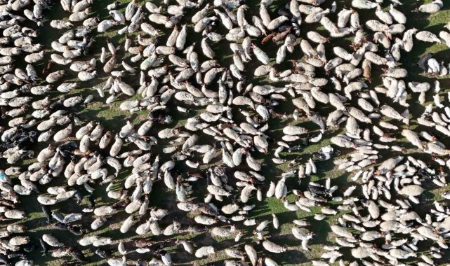 Ahlat'ta koyun ve kuzuların buluşması havadan görüntülendi