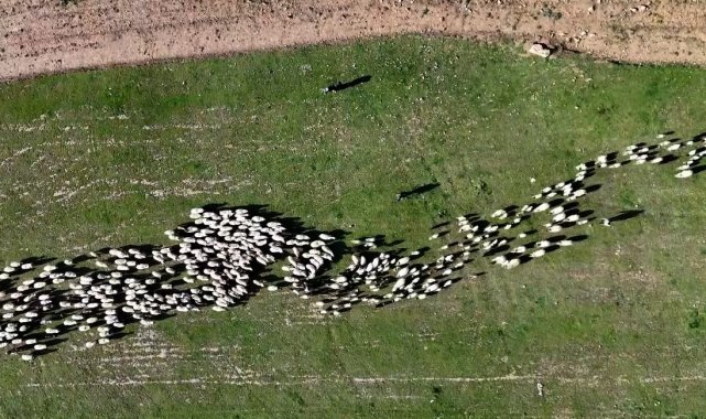 Bitlis'in Ahlat ilçesinde baharın habercisi kuzuların anneleri ile buluşması renkli görüntüler oluştururken, o anlar havadan görüntülendi.
