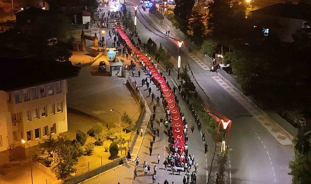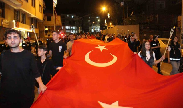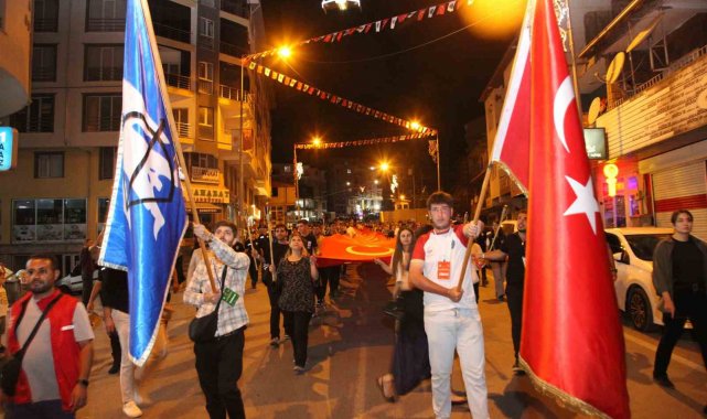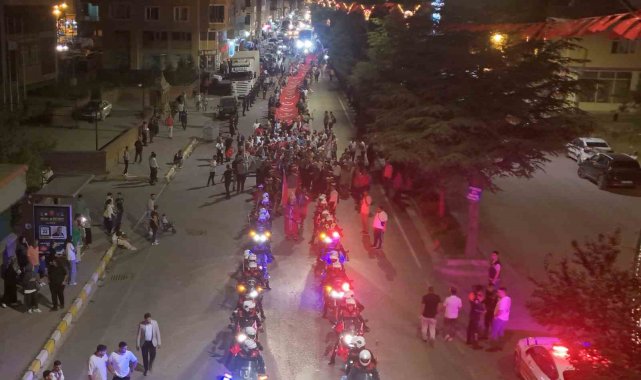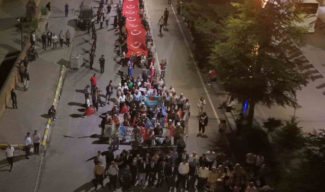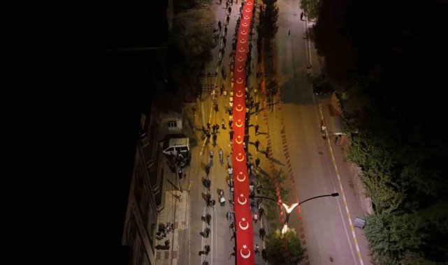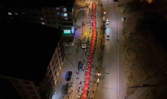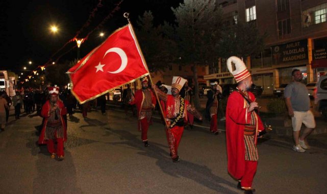 Bitlis'in Ahlat ilçesinde Malazgirt Zaferi'nin 954. yıl dönümü etkinlikleri kapsamında metrelerce uzunluğundaki Türk bayrağı ve meşalelerle fener alayı düzenlendi.
