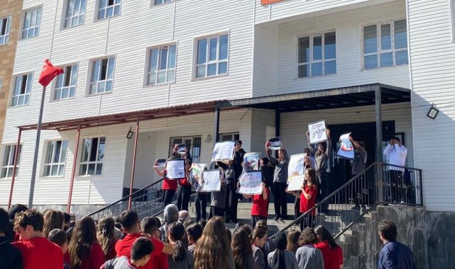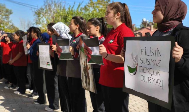 Öte yandan ilçede eğitim veren Ali Ayber Anadolu Lisesi öğrencileri de, Filistin'de yaşanan insanlık dramına sessiz kalmayarak farkındalık etkinliği yaptı. Okul bahçesinde düzenlenen etkinlikte öğrenciler çizdikleri resimler ve dövizlerle zulme uğrayan Filistinli ve Gazzeli kardeşlerinin yanında oldukları mesajları verdi.