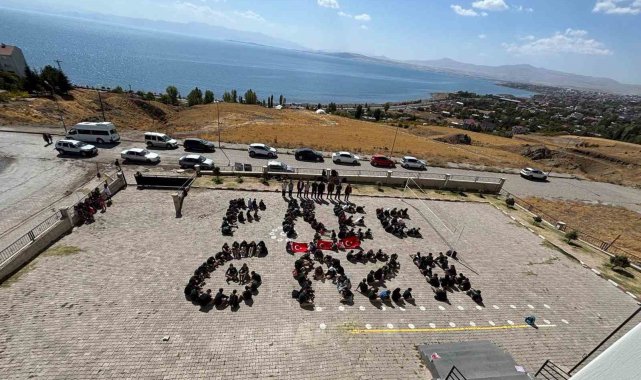 Bitlis'in Ahlat ilçesindeki öğrenciler, okul bahçesinde bir araya gelerek "Free Gaza" yazısı oluşturdu ve zulme uğrayan Filistinli kardeşlerine destek mesajı verdi.