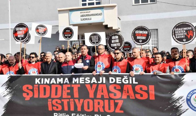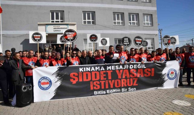 Eğitim Bir Sen Bitlis Şubesi de saldırıyı protesto etmek amacıyla olayın yaşandığı Abdurrahman Gazi İlkokulu önünde basın açıklaması yaptı. Sendika yönetiminden Abdurrahman Yaşasın tarafından okunan açıklamada, "Ahlat'ta görev yapan okul müdürü üyelerimize yönelik gerçekleştirilen menfur saldırıyı kınamak, eğitim camiasına yönelen şiddete karşı duruşumuzu göstermek ve dayanışmamızı ifade etmek üzere bir araya gelmiş bulunuyoruz. Eğitim kurumları; bilginin, emeğin, sabrın ve geleceğin inşa edildiği kutsal mekânlardır. Bu kurumların yöneticileri ve çalışanları ise toplumun yarınlarını yetiştirmek gibi ağır bir sorumluluğu omuzlarında taşıyan fedakâr insanlardır. Böylesine kutsal bir görevi yerine getiren eğitim yöneticilerine yönelik şiddetin hiçbir gerekçesi olamaz ve hiçbir şekilde kabul edilemez. Ahlat'ta okul müdürü üyelerimize yönelik gerçekleştirilen saldırı yalnızca bireylere yapılmış bir saldırı değildir. Bu saldırı; eğitime, kamu hizmetine, devlet otoritesine ve toplumun ortak değerlerine yönelmiş açık bir tehdittir. Eğitim çalışanlarının görevlerini huzur ve güven ortamı içerisinde yerine getirememesi, doğrudan doğruya geleceğimizin zarar görmesi anlamına gelmektedir. Şiddeti meşrulaştıran ve sorun çözme yöntemi olarak gören anlayış toplumsal barışa zarar vermekte, kamu düzenini zedelemektedir. Eğitim kurumlarında görev yapan yöneticilerimizin ve öğretmenlerimizin güvenliği sağlanmadan sağlıklı bir eğitim ortamından söz etmek mümkün değildir. Nitekim Eğitim-Bir-Sen'in girişimleriyle Öğretmenlik Meslek Kanunu'nda eğitimcilere yönelik şiddet suçlarına verilen cezalar artırılarak caydırıcılık güçlendirilmiştir. Bizler eğitim çalışanları olarak sorunların diyalogla, hukuk çerçevesinde ve karşılıklı anlayışla çözülmesi gerektiğine inanıyoruz. Şiddetin hiçbir türünü kabul etmiyor, eğitim camiasına yönelen her türlü saldırının karşısında kararlılıkla durduğumuzu bir kez daha ifade ediyoruz. Yetkili mercilerden beklentimiz; bu saldırının tüm yönleriyle araştırılması, sorumluların hukuk önünde gerekli cezayı alması ve benzer olayların tekrar yaşanmaması için caydırıcı tedbirlerin ivedilikle hayata geçirilmesidir. Eğitim çalışanlarının güvenliğinin sağlanması yalnızca bireysel bir hak değil, aynı zamanda kamusal bir zorunluluktur. Bugün burada sergilediğimiz birlik ve dayanışma, eğitim çalışanlarının yalnız olmadığının en güçlü göstergesidir. Eğitim camiasına yönelen her türlü saldırının karşısında durmaya, meslektaşlarımızın yanında olmaya ve hukuki sürecin takipçisi olmaya devam edeceğiz. Unutulmamalıdır ki; eğitim çalışanına uzanan el, toplumun geleceğine uzanmış sayılır. Bu vesileyle saldırıya maruz kalan okul müdürü üyelerimize geçmiş olsun dileklerimizi iletiyor, kendilerine ve tüm eğitim camiasına geçmiş olsun diyoruz. Şiddetin olmadığı, güvenli ve saygı temelli bir eğitim ortamı için mücadelemizi kararlılıkla sürdüreceğiz" dedi.