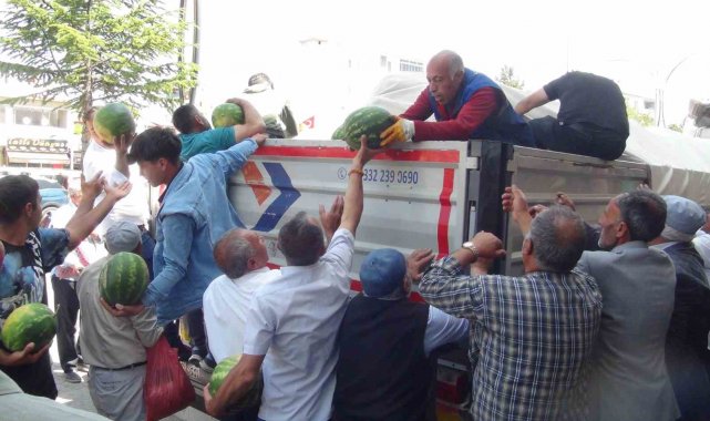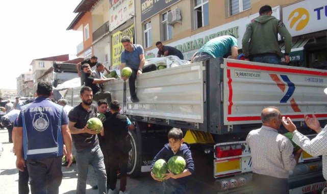 Ahlatlı çiftçi 30 ton karpuz dağıttı