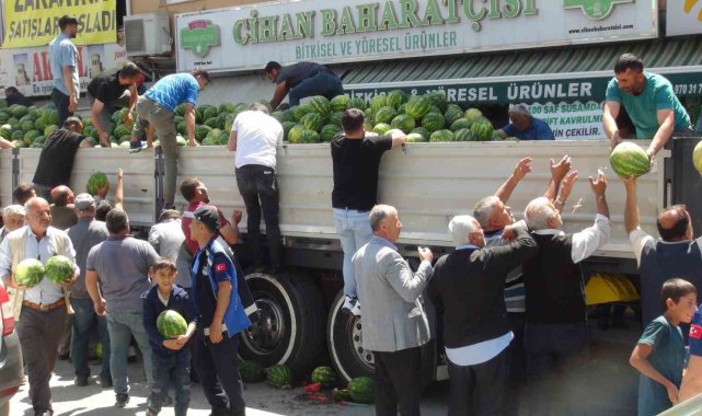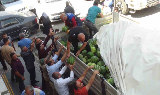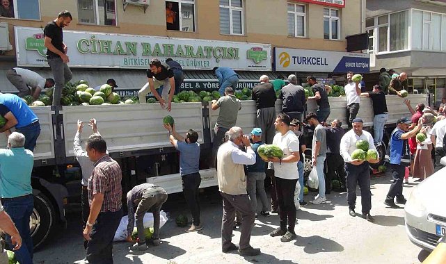 Dağıtılan karpuzlardan alan vatandaşlardan Yunus Nazlı, "Ahlatlı bir çiftçimiz bir tır dolusu karpuz gönderdi. Vatandaşlarımıza burada bedavadan ikramda bulunuyor. Allah kendisinden razı olsun" dedi.