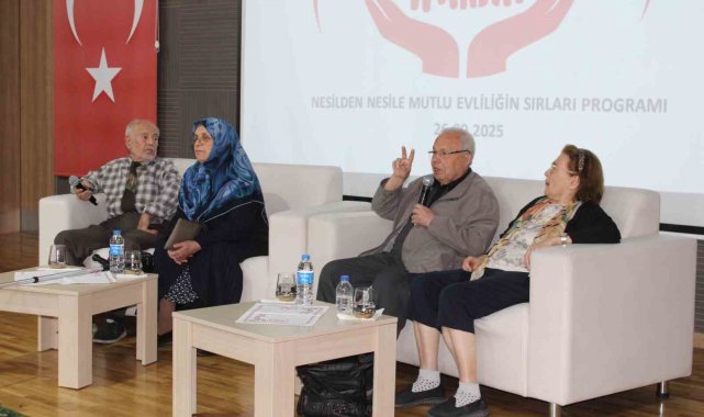 Aydın Aile ve Sosyal Hizmetler İl Müdürlüğü koordinesinde düzenlenen "Nesilden nesile mutlu evliliğin sırları" programında devletin yeni evlenecek çiftlere sunduğu kredi desteğinden faydalanan yeni evlenecek çiftler, evlilikte 50 yılını dolduran büyükler ile bir araya geldi. Düzenlenen program kapsamında 63 yıllık evlilikleriyle örnek olan Ahmet-Anakız Çuhacı çifti ile 58 yıllık evli Erdal-Gül Şahin çifti, gençlere 'sevgi, sabır ve saygının' evliliğin temeli olduğunu anlattı. Mutlu evliliğin sırlarını anlatan büyüklerin nasihatlerini dinleyen gençler ise tavsiyeleri kendi hayatlarında uygulayacaklarını söyledi. Samimi bir atmosferde geçen söyleşide yarım asrı dolduran çiftlerin anlattığı hatıraları zaman zaman gençleri gülümsetirken, 'Aile Yılı' kapsamında ailenin toplumun en önemli yapı taşı olduğu vurgulandı. Programın açılış konuşmasını gerçekleştiren Aile ve Sosyal Hizmetler İl Müdürü Abdullah Kömürcüoğlu; "Aile, milletimizin en köklü ve en sağlam değeridir. Hepimiz biliyoruz ki, güçlü bir toplum güçlü ailelerden doğar. Burada iki güzelliği aynı anda yaşıyoruz. Bir tarafta evlilik yolculuğuna yeni adım atan, devletimizin sağladığı desteklerle yuva kuran genç çiftlerimiz, diğer tarafta yarım asrı aşkın bir süre boyunca aynı yastığa baş koyarak sabırla, fedakarlıkla, muhabbetle örülmüş bir ömür süren kıymetli büyüklerimiz. Uzun süren evlilikler, yalnızca iki insanın hayat yolculuğunu paylaşması değil, aynı zamanda nesillerin yetişmesi, değerlerin aktarılması ve toplumun köklerinin sağlamlaşması demektir. Biz biliyoruz ki güçlü aile güçlü toplum, güçlü toplum ise güçlü devletin temelini oluşturur" dedi.