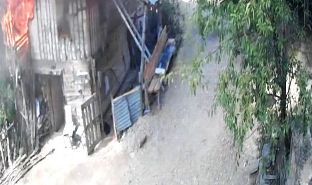 Ekiplerin hızla müdahalesiyle kontrol altına alınan yangında ev tamamen yandı. Evin alevlere teslim olduğu anlar güvenlik kamerasına yansıdı.
